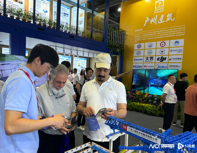 展会现场,广州建筑集团的展台3小时内连续接待了七八拨来自德国、摩纳哥、叙利亚等国家的客商,负责讲解的施洲封博士不断用英语向他们讲解展厅上摆放的建筑工程模型如何解决高层工业厂房的施工安全风险,而客商们在惊叹各种建筑“黑科技”的同时,也最关心这些技术“贵不贵”,“能不能在当地使用”。